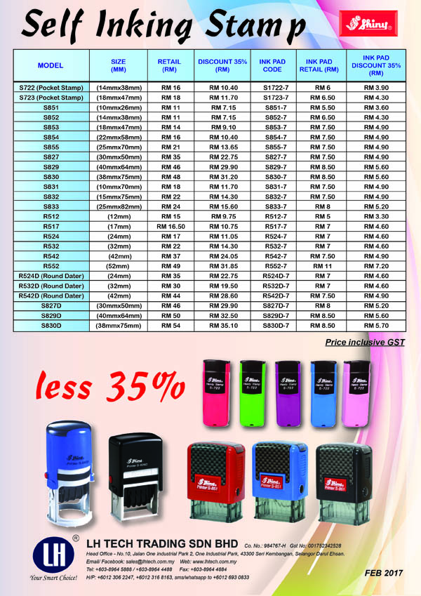 Shiny Handy Stamp (For Polymer) Description Pocket stamp comes with two sizes and various colors: SP722/43 (14mm x 38mm) SP723/43 (18mm x 47mm) Handy stamp's color subject to availability. Price List Size Chart Request an Offer Whatsapp